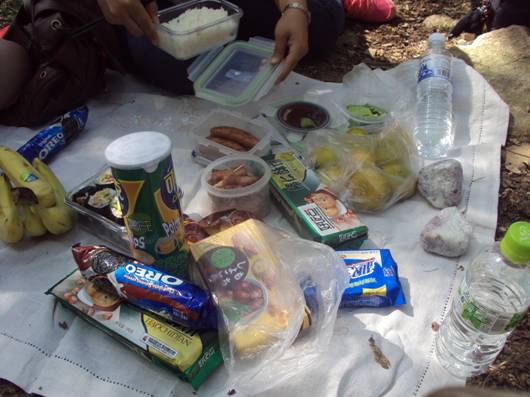 お昼はみんなで食べ物を持ち寄って、山の途中でランチ。緑に囲まれて食べるランチはとってもハオチーでした。
